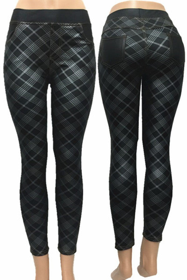 Descriptions: Faux Leather Design Stretch Pants Leggings. Good Quality Clothing.