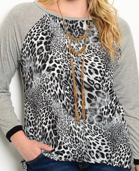 GREY CHEETAH PRINT PLUS SIZE TOP